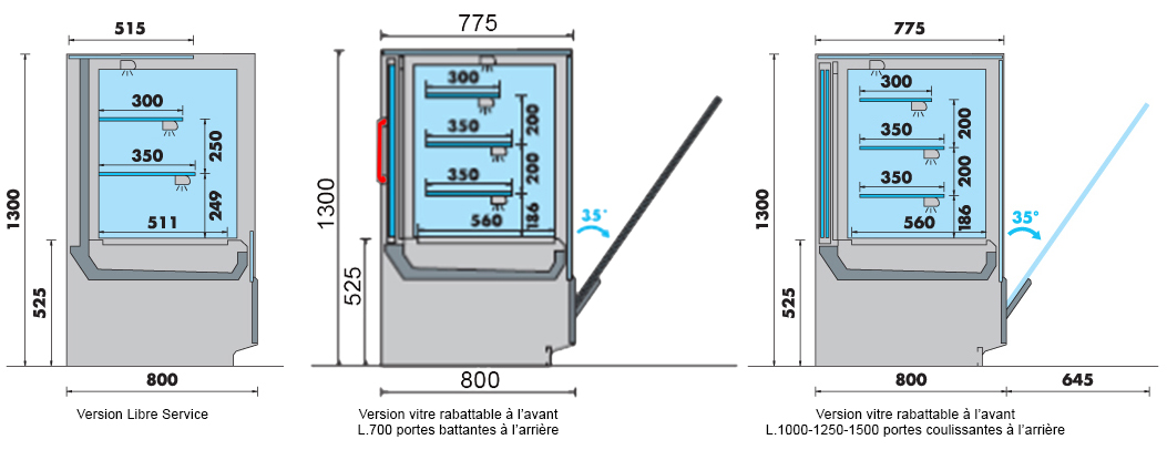 - Portes arrières coulissantes double vitrage pour les L. 1000, 1250, 1500 mm.