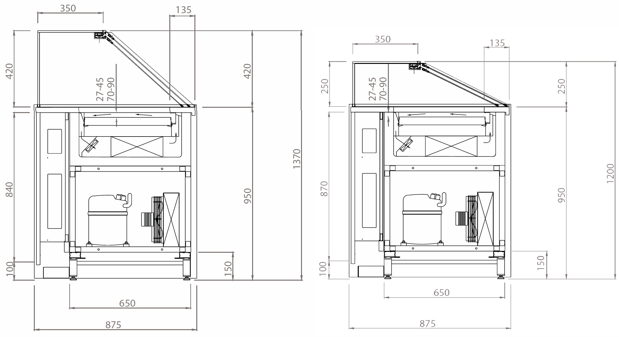 Disponible en version vitre haute H. 420 mm ou vitre basse droite H. 250 mm.