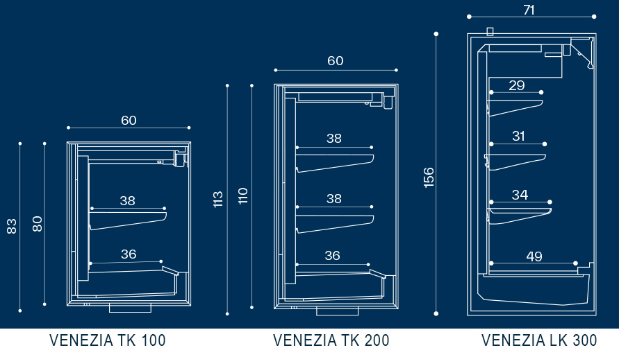 - 3 niveaux d’étagères réglable INOX AISI P. 290, 310, 340 mm. version LK300