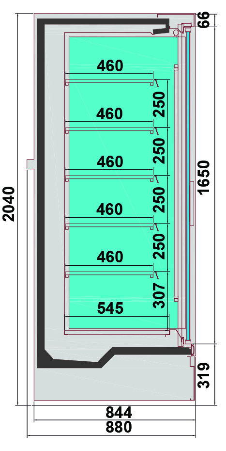 - Profondeur du meuble 880 mm. – hauteur 2 040 mm.